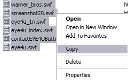 Έτσι καταλήγουμε να ψάχνουμε τους φακέλους προσωρινής αποθήκευσης των σελίδων. Κάθε πλοηγός έχει το δικό του φάκελο για προσωρινά αρχεία, που ορίζεται είτε από την κατασκευή του, είτε από κάποια παράμετρο στα Options του. Παρακάτω παρουσιάζεται ένα παράδειγμα αποθήκευσης αρχείου flash σε μόνιμη θέση στο δίσκο, από τα προσωρινά αρχεία του Microsoft Internet Explorer (για Windows NT/2000/XP).
