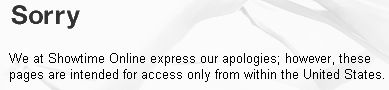 Έστω ότι για κάποιο λόγο θέλουμε να δούμε τις τηλεοπτικές σειρές που ανήκουν στην Αμερικανική εταιρεία Showtime. Στην περίπτωση που δεν μπαίνουμε από Αμερικανικό υπολογιστή (άρα έχουμε non USA IP address), κατά την είσοδό μας στη σελίδα τους θα λάβουμε το εξής μήνυμα: