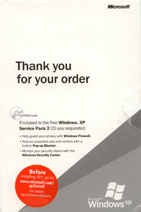 Ο τρίτος τρόπος είναι να παραγγείλουν το CD με το Service Pack 2 κατευθείαν από τη Microsoft, χωρίς κανένα κόστος αγοράς ή μεταφοράς. Το CD προορίζεται για όσους δεν μπορούν να το κατεβάσουν λόγω αργής σύνδεσης ή έλλειψης σύνδεσης με το Internet. Μάλιστα η Microsoft ξόδεψε περίπου 300 εκατομμύρια δολάρια για να διαφημίσει και να μοιράσει το αρχείο σε όλους τους χρήστες της ώστε να δείξει πόσο σημαντικό είναι, όπως και πόσα κάνει για να τους βοηθήσει.